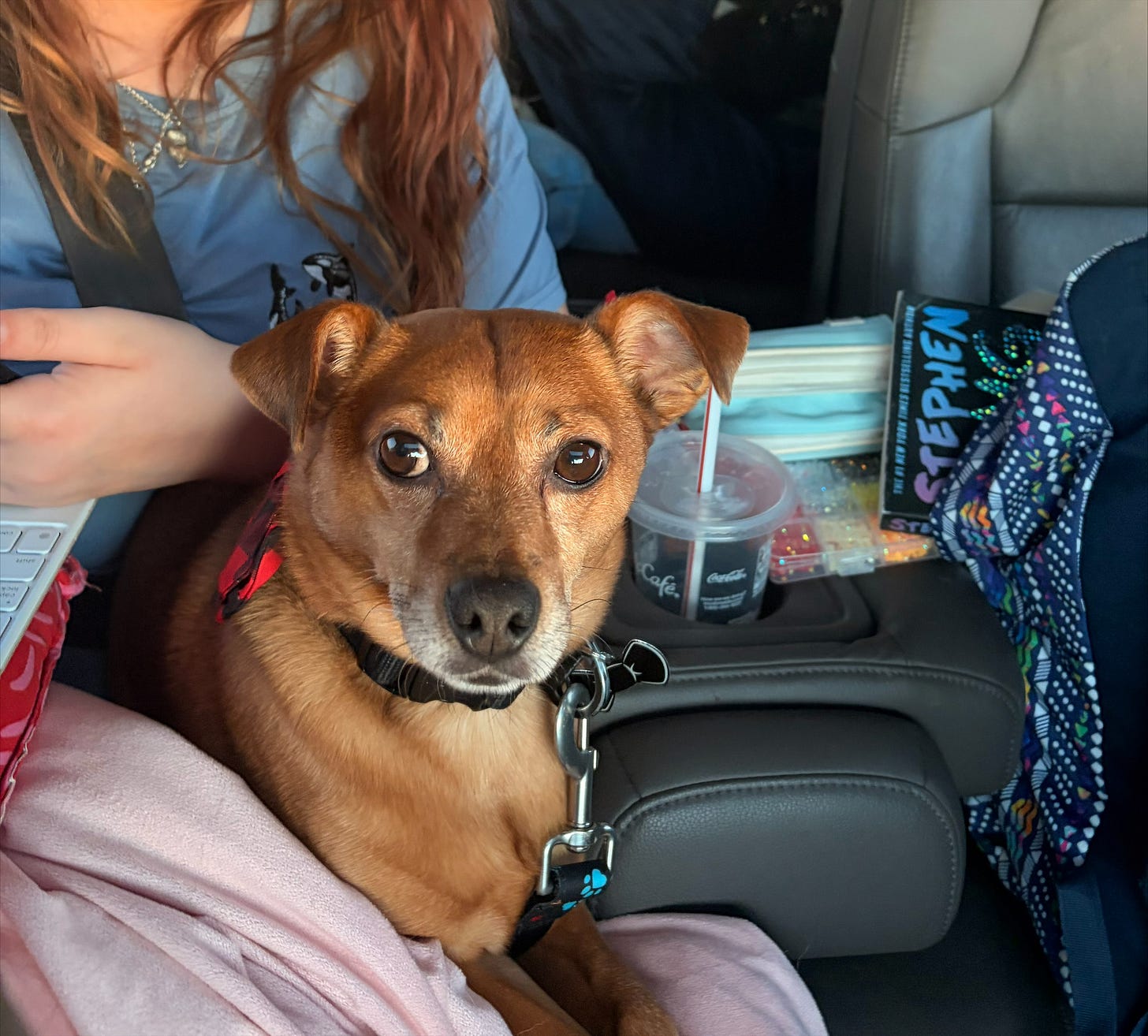 After a long twelve-hour drive, we made it to Iowa last night. The roads were clear, it was above freezing the entire day, and Moji was the perfect little traveler (as were our kids.) I did, however, learn a painful lesson. Having skipped a few days at the gym because of my pressing book deadline, I squeezed in a good hard weightlifting session the night before we left. The next morning, and for the next twelve hours…ouch.