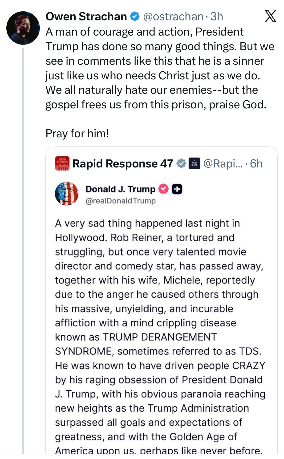 When Jemar and I were connecting today over Reiner’s death, he noted that he also hadn’t met Rob in person, be he would always respect him “for showing more courage than a lot of Christian pastors and politicians.”